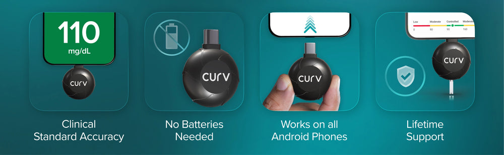 BeatO CURV Glucometer FREE Strips & Lancets Type-C USB Connector | Android Only